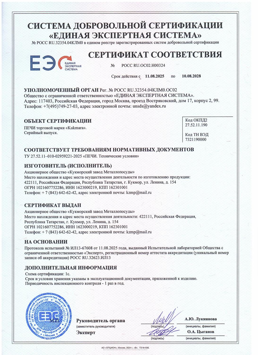 Сертификат на печи 2025